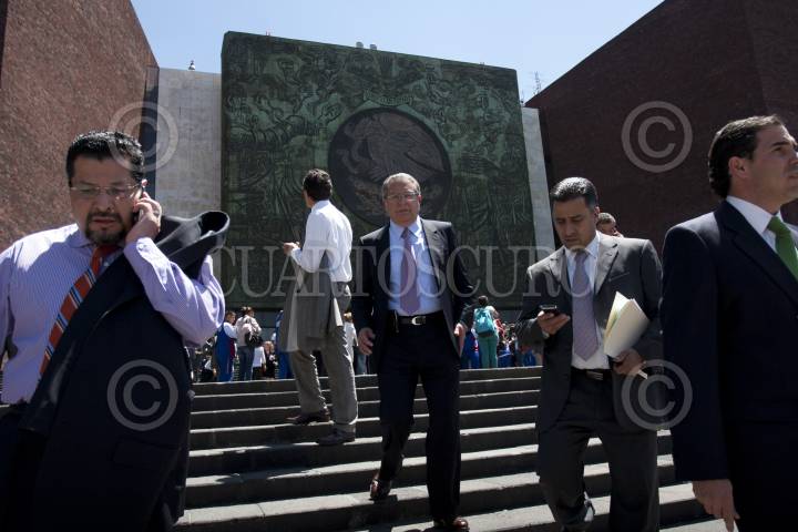 MÉXICO, D.F., 20MARZO2012.- Diputados que participaban en la sesión ordinaria en San Lázaro, y visitantes, fueron desalojados del recinto legislativo federal tras el temblor de 7.8 en la escala de Richter que se sintió en la capital del país. FOTO: GUILLERMO PEREA /CUARTOSCURO.COM