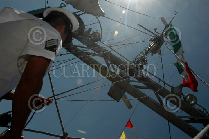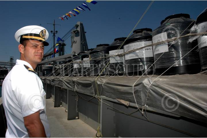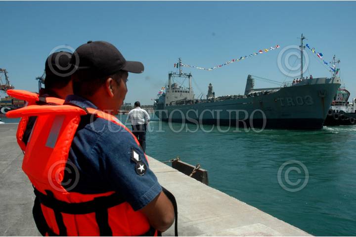 VERACRUZ, VERACRUZ.- 14MARZO2010.- Con 700 toneladas de ayuda humanitaria este medio díaa zarpo por segunda ocasión del puerto de Veracruz el buque, ARM Tarasco, de la secretaria de marina armada de México. FOTO: JOSÉ CANDELARIO/CUARTOSCURO.COM
