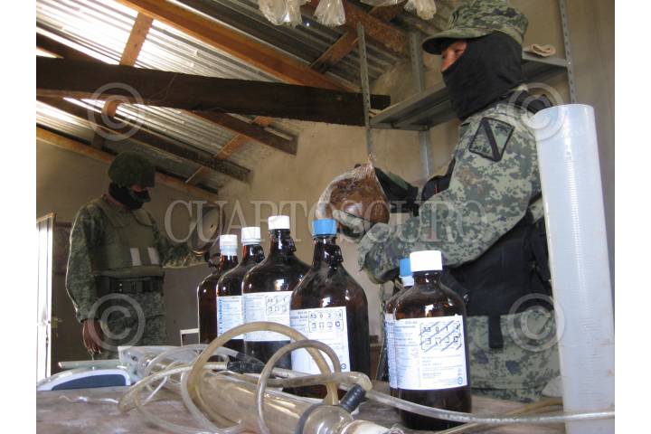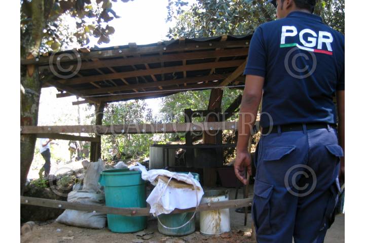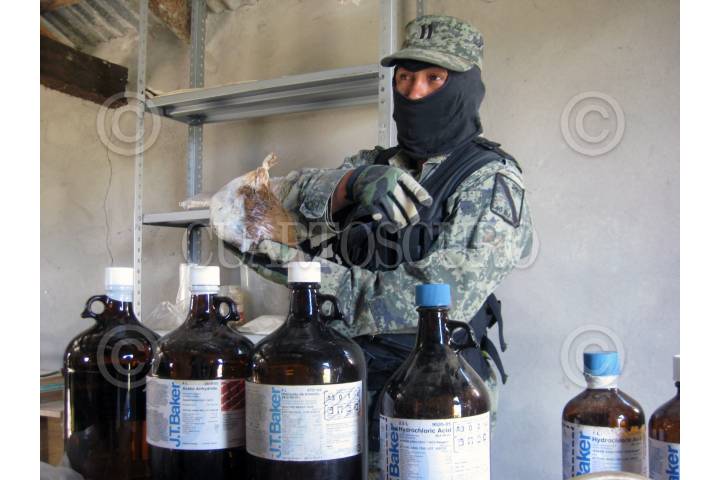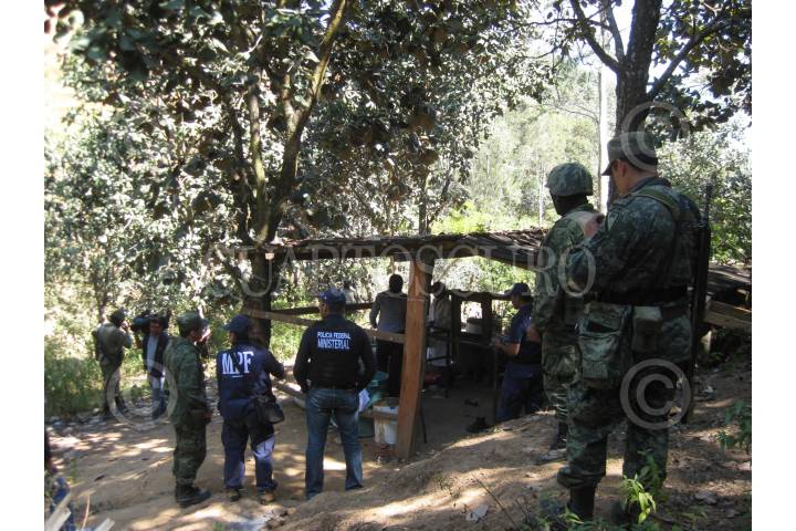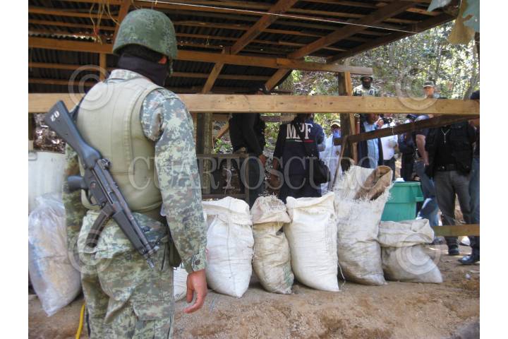 TLACOTEPEC, GUERRERO 18NOVIEMBRE2010.- Efectivos del ejercito mexicano, realizaron un operativo donde se desmantelaron 3 narcolaboratorios en el cual se procesaba heroína base, también fueron decomisando armas de alto poder, cartuchos de diversos calibres, así como mas de 700 kilogramos de marihuana y goma de opio. FOTO: OSCAR ALVARADO/CUARTOSCURO.COM