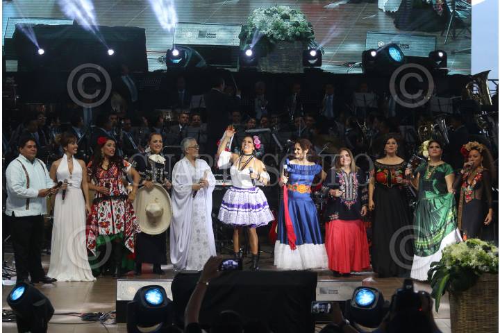 OAXACA, OAXACA,17SEPTIEMBRE2017.- Un éxito resultó el concierto “Oaxaca Corazón” realizado la noche de este domingo en el Auditorio Guelaguetza de la ciudad de Oaxaca, cuyo fin fue recaudar recursos que servirá para la compra de artículo de primera necesidad para los damnificados por el sismo del pasado 7 de septiembre. Esta iniciativa fue organizada por las cantantes oaxaqueñas Lila Downs y Susana Harp quienes convocaron a las oaaxaqueñas, Ana Díaz, Georgina Meneses, Alejandra Robles, Natalia Cruz, al tenor Toño Cisneros y a las nacionales Tania Libertad, Aída Cuevas, Eugenia León y a la internacional Filippa Giordano, quienes participaron en el recital que tuvo una duración de más de dos horas. También participaron los poetas juchitecos, Mardonio Carballo y Natalia Toledo quienes dedicaron sentidas palabras a sus paisanos. FOTO: ARTURO PÉREZ ALFONSO/ CUARTOSCURO.COM