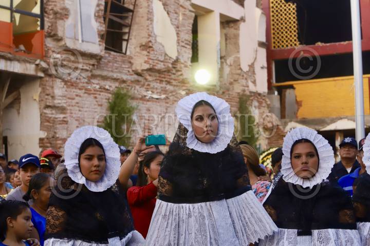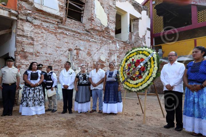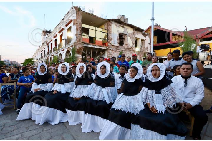 JUCHITÁN DE ZARAGOZA, OAXACA, 07SEPTIEMBRE2018.- Este viernes se cumplió un año del sismo que sacudió a la región DEL Istmo de Tehuantepec y dejó 82 fallecidos, por ello se realizó un acto cívico por parte de autoridades de Juchitán de Zaragoza para recordar a quienes perecieron, por la tarde se celebró una misa en la que participaron mujeres con vestimenta tradicional de luto. FOTO: ESTACIÓN FOTO/ CUARTOSCURO.COM