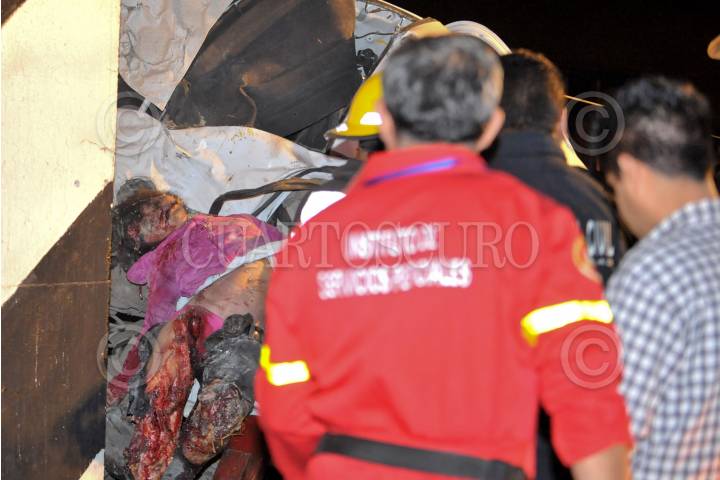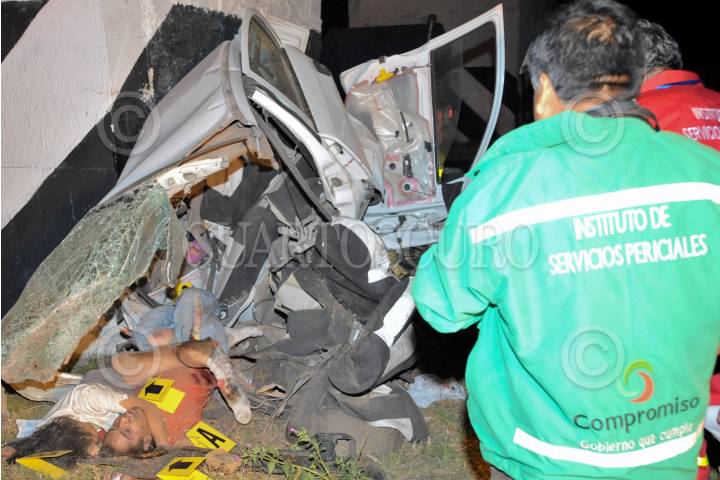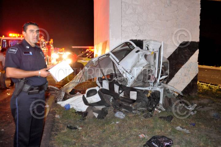 MÉXICO, D.F., 03JUNIO2010.- Un sujeto y dos Mujeres de entre 20 y 30 años, pierden la vida al impactar el auto tipo Tsuru en el que viajaban contra un poste en el kilómetro 12 + 800 de la Autopista México - Tulancingo, en el Poblado de Santa Catarina perímetro del municipio de Acolman. De dicho accidente fueron trasladadas otras tres personas con lesiones graves en helicóptero a los hospitales de Balbuena y Xoco en el Distrito Federal. FOTO: LUIS CARBAYO/CUARTOSCURO.COM