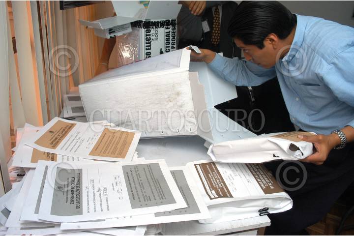 MEXICO, D.F., 05JULIO2006.- Comenzó el conteo de los votos de las elecciones presidenciales en la 8a. junta del cómite distrital del IFE, para definir a el ganador de los comicios, victoria que se disputan los dos principales contendientes Andrés Manuel Lopez del PRD y Felipe Calderón, PAN. FOTO: Guillermo Perea/CUARTOSCURO.COM