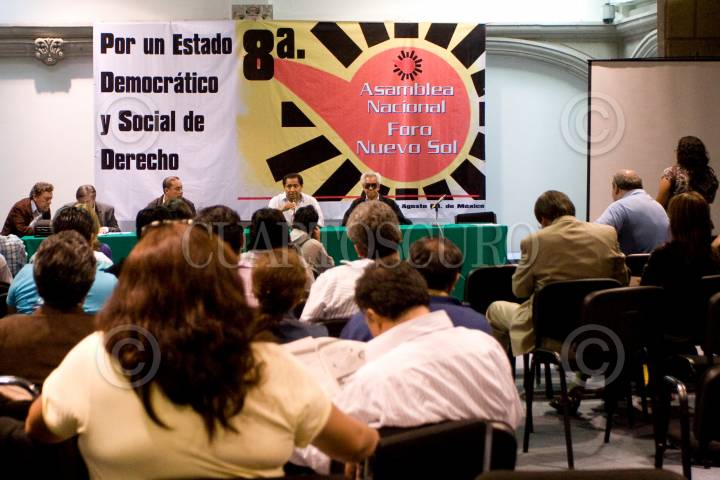 MÉXICO D.F., 15AGOSTO2010.- Integrantes de PRD, pertenecientes a la corriente Nuevo Sol, realizaron su 8ª. Asamblea Nacional, en la cual se esperaba la asistencia de Amalia García, Gobernadora de Zacatecas, Marcelo Ebrad, Jefe del Gobierno del D.F. y Alejandra Barrales Legisladora del D.F. los cuales cancelaron su asistencia de ultima hora. FOTO: GUILLERMO PEREA/CUARTOSCURO.COM