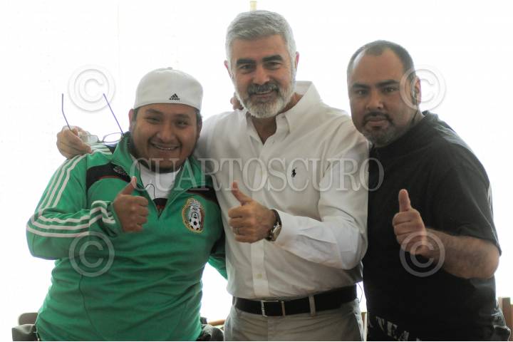 MÉXICO, D.F., 23AGOSTO2011.- El actor Saúl Lisazo quien interpreta a Julián se tomó la foto con parte del staff que graba "El 8vo Mandamiento" telenovela de Argos y que aborda la historia de Julián, el Director de un diario que da por perdida a su esposa en los atentados de las torres gemelas y que diez años después regresa con su familia sin recordar nada de su pasado. FOTO: FRANCISCO RODRÍGUEZ/CUARTOSCURO.COM