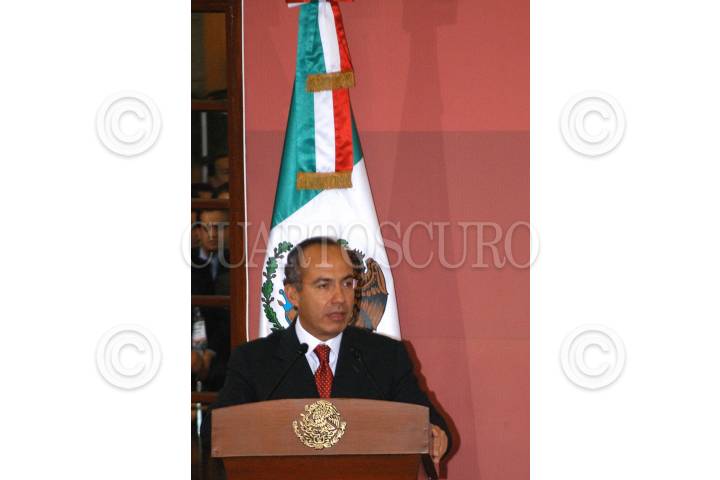 MÉXICO D.F. 27ABRIL2007.-El presidente Felipe Calderón Hinojosa, durante la 9a. Reunión del Consejo Consultivo del Instituto de los Mexicanos en el Extrajero, llevado acabo en la residencia oficial de los Pinos. FOTO: GUILLERMO PEREA/CUARTOSCURO.COM