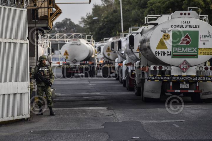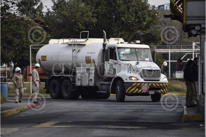 CIUDAD DE MÉXICO, 16ENERO2019.- Este miércoles pipas continúan saliendo paulatinamente de la Terminal de Abastecimiento y Despacho (TAD) de Pemex ubicada en Eje 3 Sur Añil de la colonia Granjas México, para descargar en distintos puntos de distribución ante el desabasto de gasolina que se ha dado por más de una semana a nivel nacional. La salida promedio de una pipa es entre 15 minutos y 20 minutos. Recientemente el presidente de la República, Andrés Manuel López Obrador, anunció que se adquirirán 500 pipas para aumentar la distribución del combustible. FOTO: MARIO JASSO /CUARTOSCURO.COM