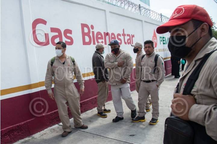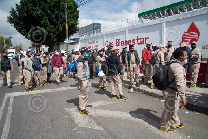 Trabajadores de Gas Bienestar se manifestaron al exterior de las instalaciones ubicadas sobre calle Añil ante el presunto incumplimiento de sueldo, utilidades, prestaciones, y seguro de vida contemplados en su contrato inicial.