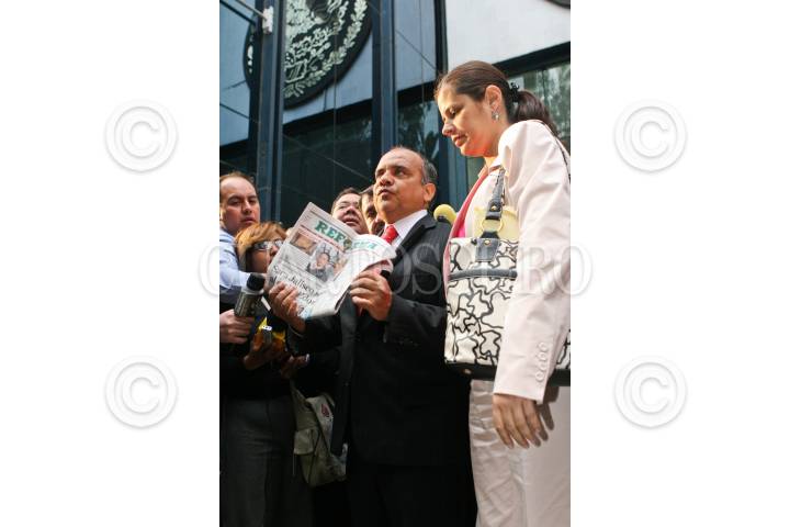 MÉXICO, D.F., 27ENERO2011.- Manuel Añorve, candidato a la gubernatura de Guerrero, acudió a la PGR para solicitar se aclare su situación en torno a las declaraciones de un testigo colaborador que aseguró que recibió 15 millones de dólares por parte del narcotráfico para presuntamente financiar su precampaña. En la imagen, el candidato acompañado de su esposa Julieta Fernández. FOTO: ISAAC ESQUIVEL/CUARTOSCURO.COM