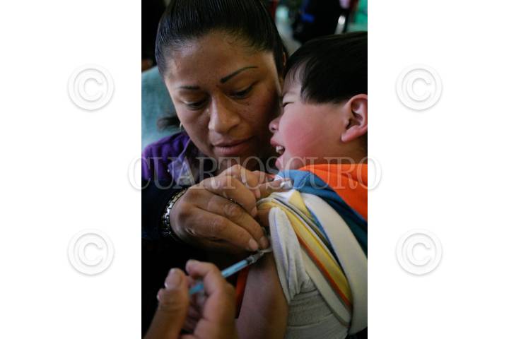 MÉXICO, D.F., 19ENERO2009.- La Secretaría de Salud del Distrito Federal, inició una campaña de vacunación en diferentes estaciones del metro de la capital contra el virus de la Influenza A-H1N1. Niños y Adultos son los más vulnerables a contraer este virus, por lo tanto son los mas vacunados. En la imagen, un niño es vacunado contra el virus de la influenza. FOTO: MISAEL VALTIERRA/CUARTOSCURO.COM