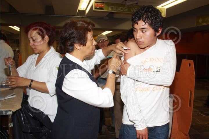 MÉXICO, D.F., 19ENERO2010.- La Secretaría de Salud del Distrito Federal, inició una campaña de vacunación en diferentes estaciones del metro de la capital contra el virus de la Influenza A-H1N1. FOTO: SÁSHENKA GUTIÉRREZ/CUARTOSCURO.COM