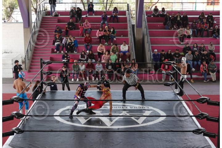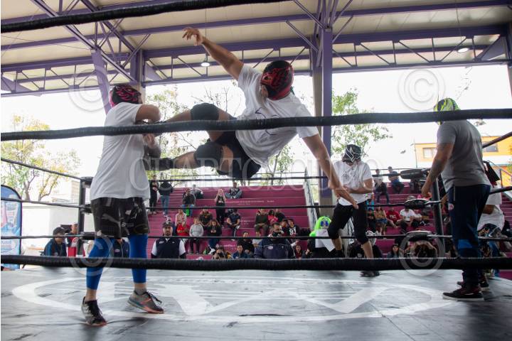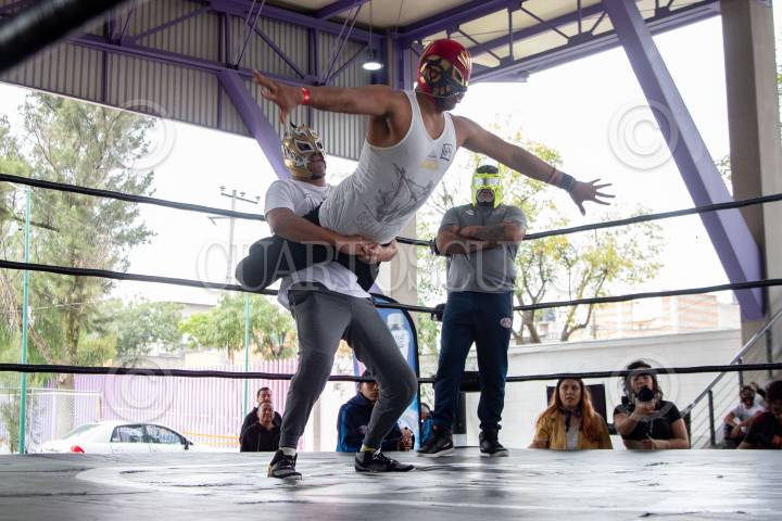 CIUDAD DE MÉXICO, 20NOVIEMBRE2024. El Instituto de la Juventud (INJUVE) de la Ciudad de México en coordinación con la Brigada Dos de Tres Caídas y Lucha Libre AAA Worldwide organizan el torneo "Lucha por el Barrio. La búsqueda de la nueva estrella de la lucha libre", en la Utopía Meyehualco de la alcaldía Iztapalapa. FOTO: EDGAR NEGRETE LIRA/CUARTOSCURO.COM