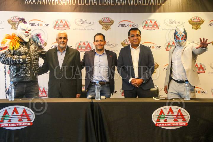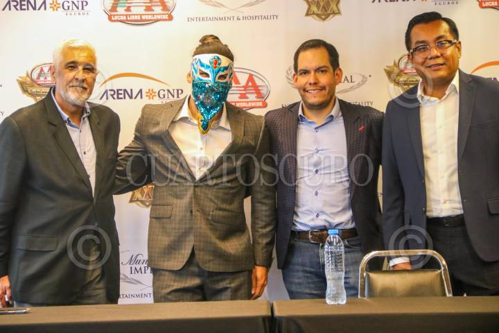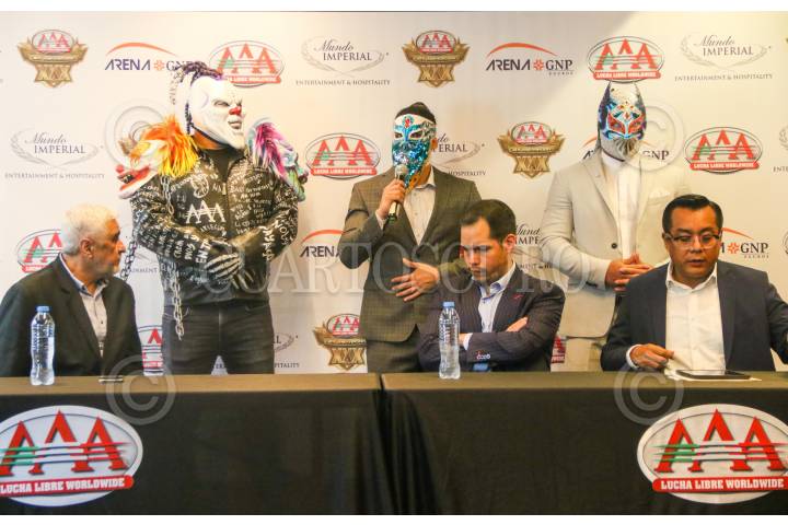 CIUDAD DE MÉXICO, 06JUNIO2024. Presentación de Latin Lover como el Director de talento de la AAA por parte de Dorian Roldán, Director General de Lucha Libre Triple A. FOTO: EDGAR NEGRETE LIRA/CUARTOSCURO.COM