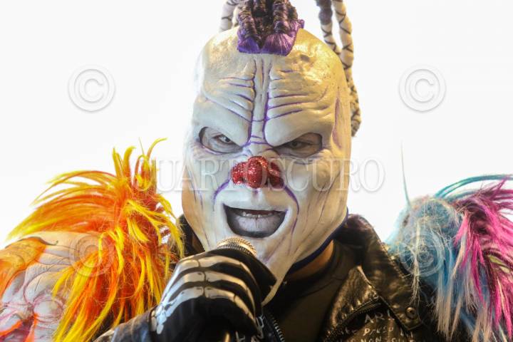CIUDAD DE MÉXICO, 20NOVIEMBRE2024. El luchador profesional Dave The Clown durante las visorias del torneo "Lucha por el Barrio organizado por el Instituto de la Juventud (INJUVE) de la Ciudad de México en coordinación con la Brigada Dos de Tres Caídas y Lucha Libre AAA Worldwide. La búsqueda de la nueva estrella de la lucha libre", en la Utopía Meyehualco de la alcaldía Iztapalapa. FOTO: EDGAR NEGRETE LIRA/CUARTOSCURO.COM