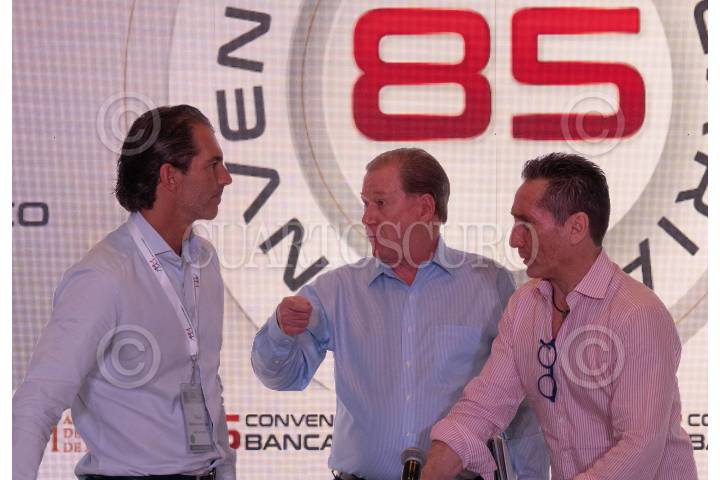 Raúl Martínez Ostos, presidente y director General de Berclays; Julio Carranza, director General de Bancoppel, y Daniel Becker, presidente de la ABM, durante la 85 Convención Bancaria