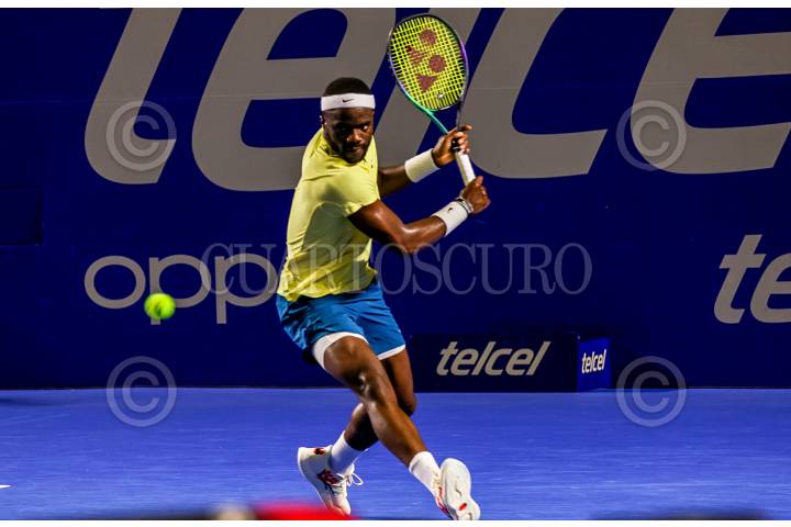 Frances Tiaofe durante su enfrentamiento contra Taylos Fritz en el Abierto Mexicano de Tenis 2023 en Acapulco, Guerrero