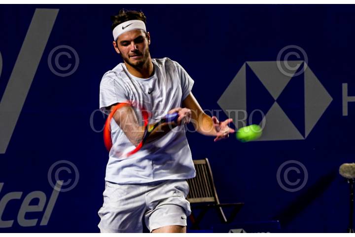 Taylos Fritz durante el partido en donde obtuvo la victoria contra Frances Tiaofe en el Abierto Mexicano de Tenis 2023 en Acapulco, Guerrero
