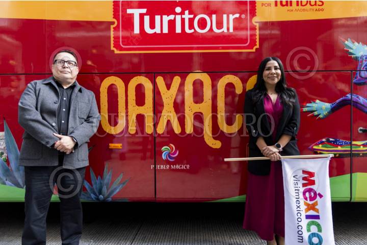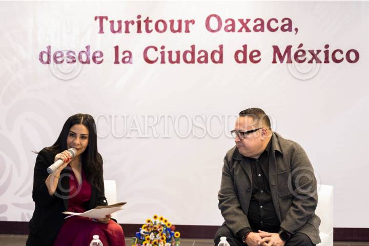 CIUDAD DE MÉXICO. 25JULIO2025.- En la Secretaria de Turismo, se presentó el "Turitour Oaxaca desde la Ciudad de México", por parte de Mariana del Carmen Díaz y Victor Cortes Melo gerente de Mobility ADO. FOTO: VICTORIA VALTIERRA/CUARTOSCURO.COM