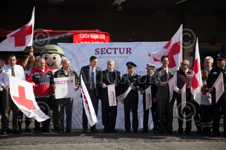 CIUDAD DE MÉXICO, 14DICIEMBRE2018.- Se realizó el banderazo de salida del Operativo Vacacional de Invierno encabezado por el titular de la Secretaría de Turismo, Miguel Torruco Marqués, en la Terminal de Autobuses de Pasajeros de Oriente (TAPO). FOTO: ILSE HUESCA /CUARTOSCURO.COM