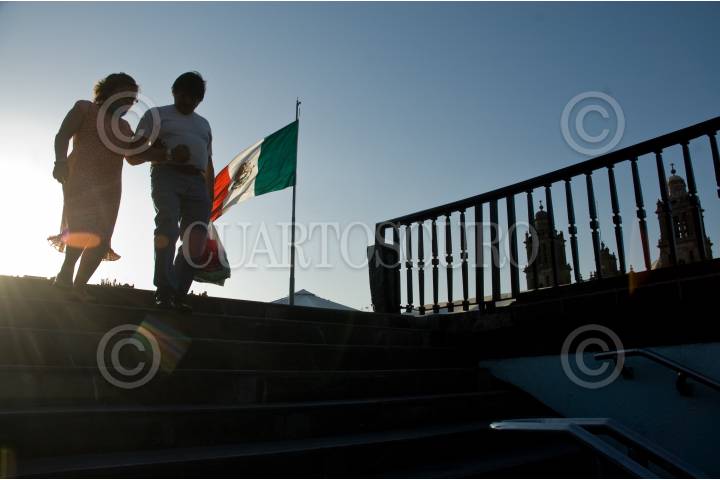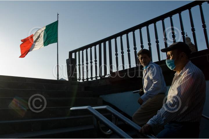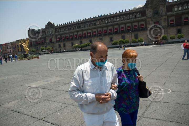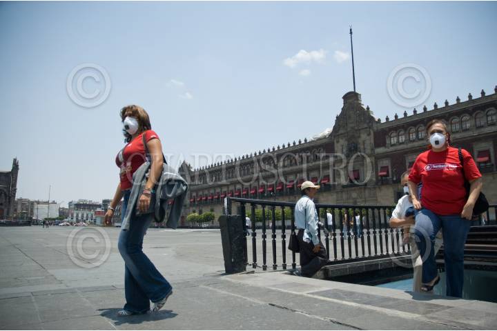 MÉXICO, D.F., 03MAYO2009.- Muy pocas personas acuden al Zócalo de la ciudad, muchas de ellas usan cubre bocas, el uso del cubre bocas en áreas en donde se congregan muchas personas se recomienda como medida para evitar la propagación del virus de la influenza humana AH1N1. FOTO: RODOLFO ANGULO/CUARTOSCURO.COM