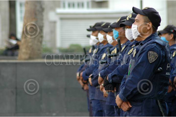 MÉXICO, D.F., 07MAYO2009.- Elementos de seguridad pública del D.F., portan cubre bocas como medida preventiva para evitar la propagación del virus de la influenza humana AH1N1. FOTO: RODOLFO ANGULO/CUARTOSCURO.COM
