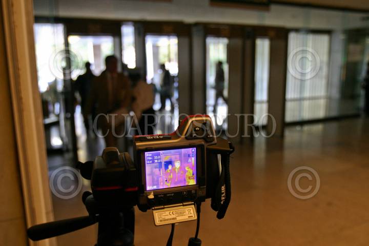 MÉXICO D.F., 23SEPTIEMBRE2009.- Una cámara térmica mide la temperatura de cada una de las personas que ingresan al Tribunal Superior de Justicia del Distrito Federal, esto como medida preventiva ante el virus de la influenza AH1N1. FOTO: RODOLFO ANGULO/CUARTOSCURO.COM