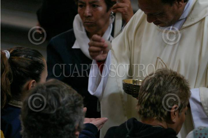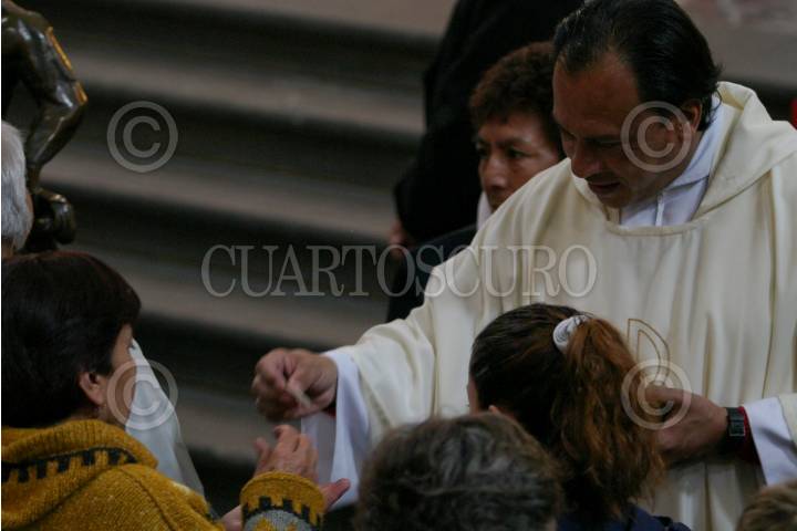 MÉXICO, D.F., 03ENERO2010.- Sacerdotes católicos ofrecen la ostia de la comunión en la manos de los feligreses para evitar posibles contagios como el de la gripe AH1N1. FOTO: RODOLFO ANGULO/CUARTOSCURO.COM