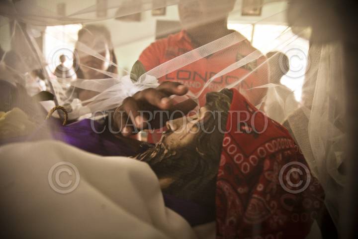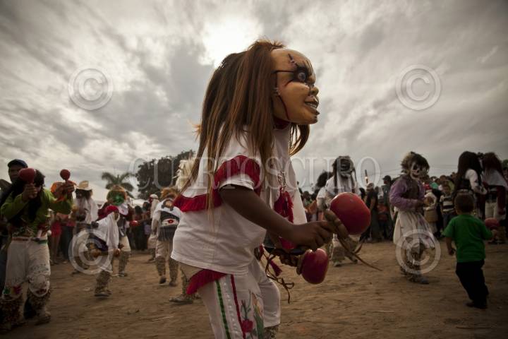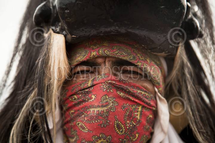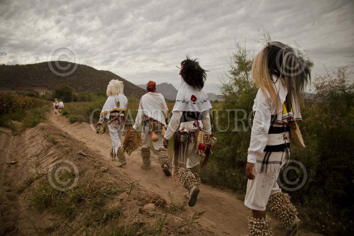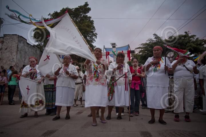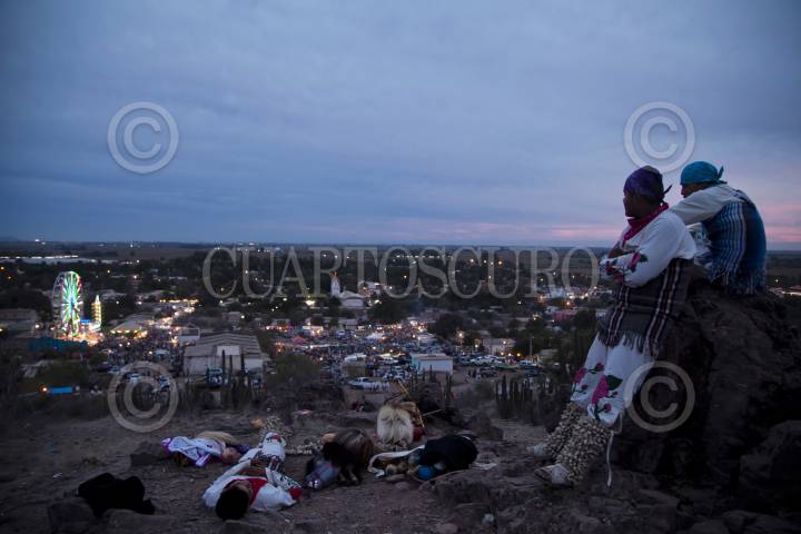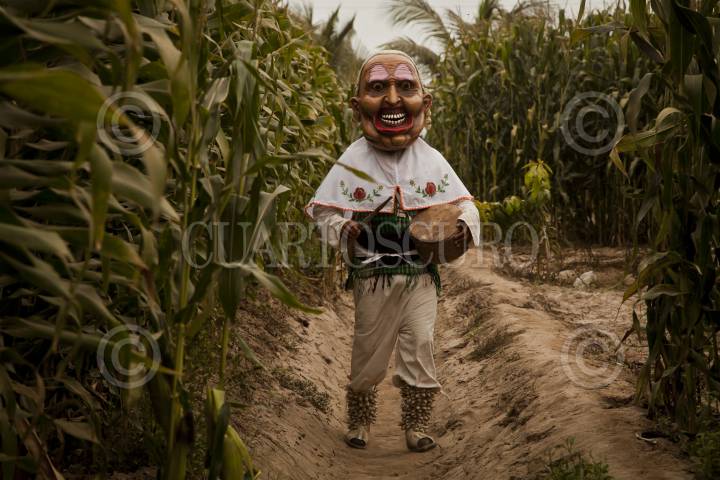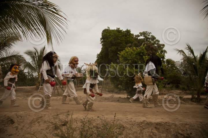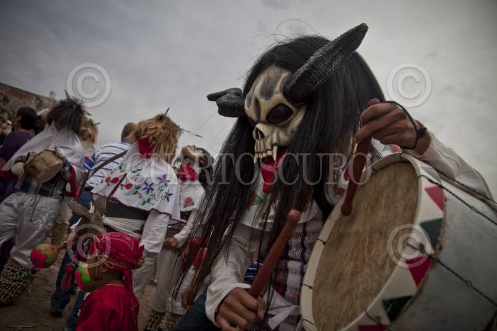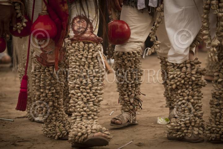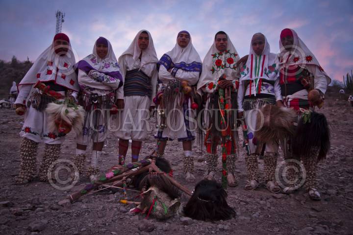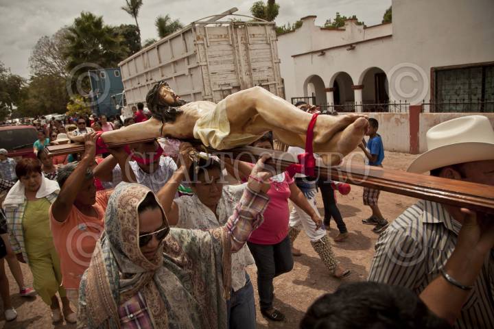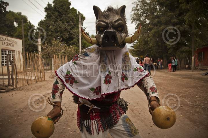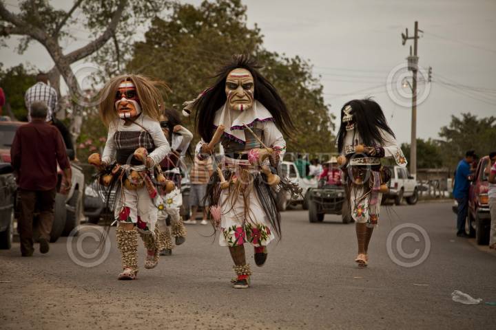 AHOME, SINALOA, 19ABRIL2014.- Miles de personas de origen indígena Mayo -Yoreme se dieron cita en el poblado de San Miguel Zapotitlán, para representar el viacrucis de Jesús, en la semana mayor donde observamos el ritual católico mezclado con danzas y cantos relacionados con el venado y judíos o fariseos, esto debido a la evangelización por parte de los jesuitas. Esta festividad es considerada la mas importante que se celebra al norte de Sinaloa ya que año tras año mas personas se suman, especialmente niños. Los judíos y fariseos llevan puestas mascaras que originalmente eran de piel de cabra, la cual sirve para conservar el anonimato y representan los cascos de los romanos en forma de ridiculización, en la actualidad las mascaras han tomado diferentes formas, las carrilleras una Falda hilada con piola bordada, con carrizos se coloca a la cintura su función es producir un sonido espectacular al caminar, correr y danzar, los Tenabaris son Capullos de mariposa secos, cocidos en brazadas en los que previamente se deposita una piedra para el sonido que son puestos en los pies, la capa es un manto bordado con imágenes religiosas le da al judío elegancia, el tambor de cuero produce el sonido para la danza del judío y una lanza para protegerse de los animales durante las corridas. Las mujeres se visten de blanco y llevan flores en un pañuelo y se les conoce como marías, la celebración empieza con el domingo de ramos, los judíos bendicen palma en la iglesia, el miércoles de ceniza a las 12 de la noche los judíos entran a la iglesia y sacan a el señor, y lo meten a la cárcel, el jueves santo se hace un conti en la tarde, el viernes santo los judíos se van a las corridas por las mañanas, tumban cruces que están en casas en busca de Cristo para darle muerte, al por la tarde se un hace un conti en el centro ceremonial ,al señor ya lo crucificaron, el sábado de gloria se corre porque el señor resucito, los arrepentidos esperan para poder entrar a la iglesia para ser bendecidos y quemar las mascaras en forma de arrepentimiento por haber entregado a Jesús para la crucifixión, para el domingo se celebra la corrida de santos en honor a la resurrección de Cristo, durante las corridas se recorren varios poblados aledaños al centro ceremonial, en donde año tras año mas personas realizan esta actividad, para cumplir sus mandas, por los favores cumplidos. FOTO: RASHIDE FRIAS /CUARTOSCURO.COM