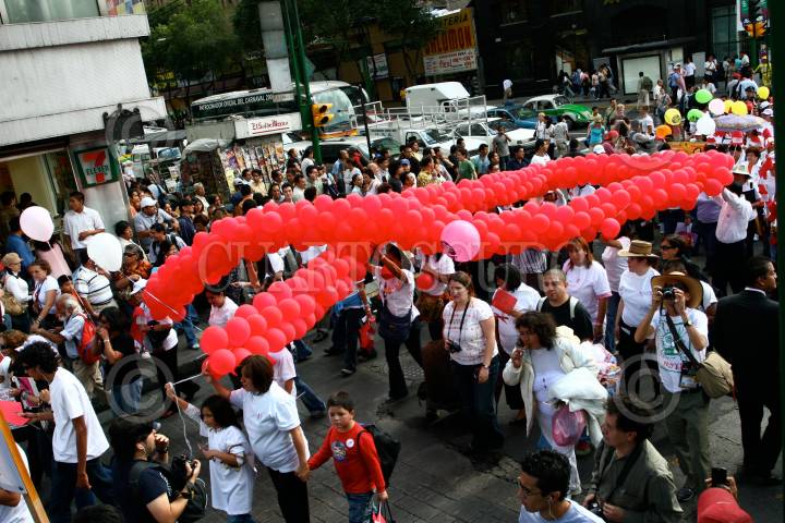 MÉXICO, D.F., 28AGOSTO2009.- En la glorieta de Insurgentes, se llevo acabo el lanzamiento de la campaña 'love' que la organiza la Secretaria de Salud del DF y la asociacion AIDS Healthcare Fundation, el motivo de la misma es la promoción uso y distribución del condón de manera gratuita y realizar pruebas rápidas de VIH. FOTO: ENRIQUE ORDÓÑEZ/CUARTOSCURO.COM
