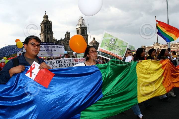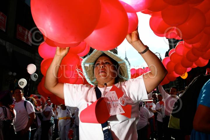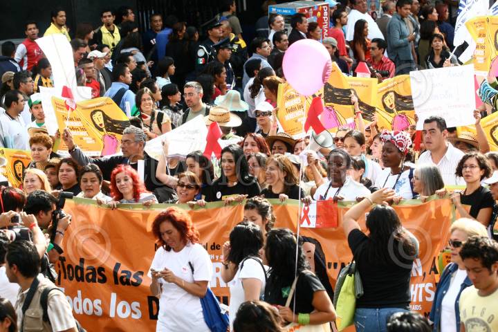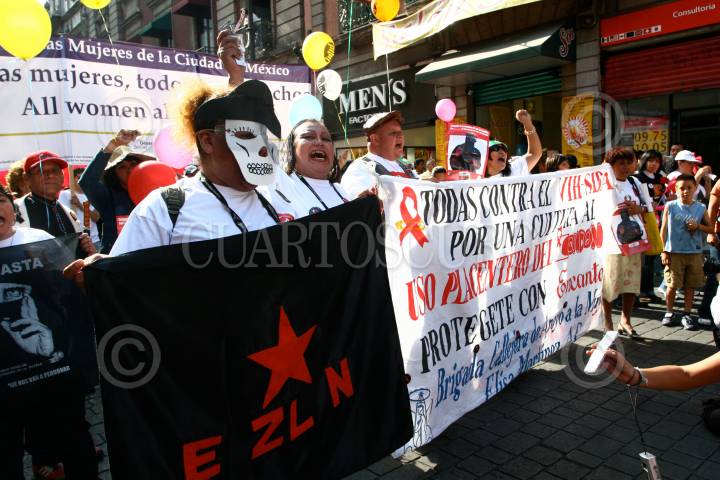 MÉXICO, D.F., 05AGOSTO2008.- Decenas de mujeres participaron en la marcha Todas las Mujeres, Todos los Derechos, realizada en el Centro Histórico de la ciudad de México, en el marco de la Conferencia Internacional sobre el SIDA. FOTO: ISAAC ESQUIVEL/CUARTOSCURO.COM