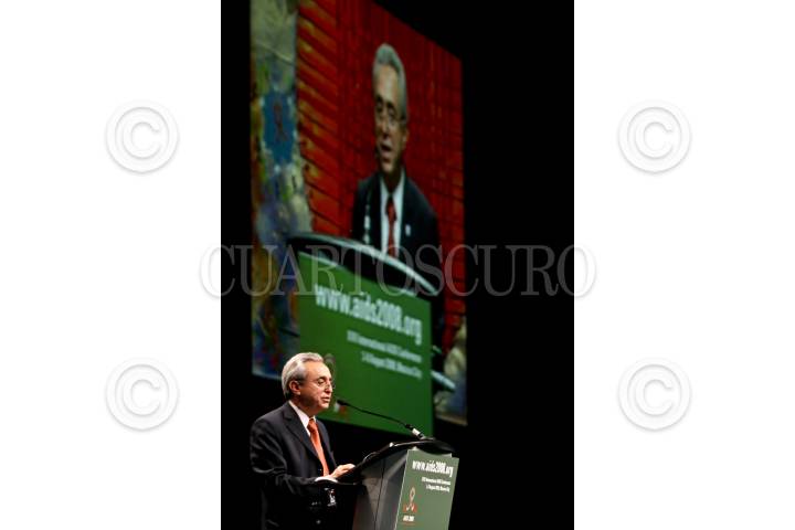 MÉXICO D.F., 08AGOSTO2008.- Pedro Cahn, co-presidente de la AIDS 2008 y ex presidente de la Sociedad Internacional de SIDA, en su discurso durante la ceremonia de clausura de la XVII Conferencia Internacional sobre el SIDA que se realizo en el centro Banamex. FOTO: RODOLFO ANGULO/CUARTOSCURO.COM