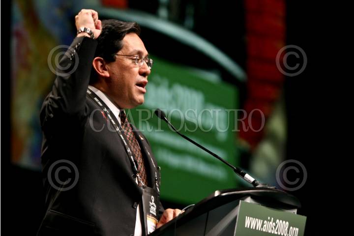 MÉXICO D.F., 08AGOSTO2008.- Luis Soto Ramirez, co-presidente en México de AIDS 2008, durante la ceremonia de clausura de la XVII Conferencia Internacional sobre el SIDA que se realizo en el centro Banamex. FOTO: RODOLFO ANGULO/CUARTOSCURO.COM
