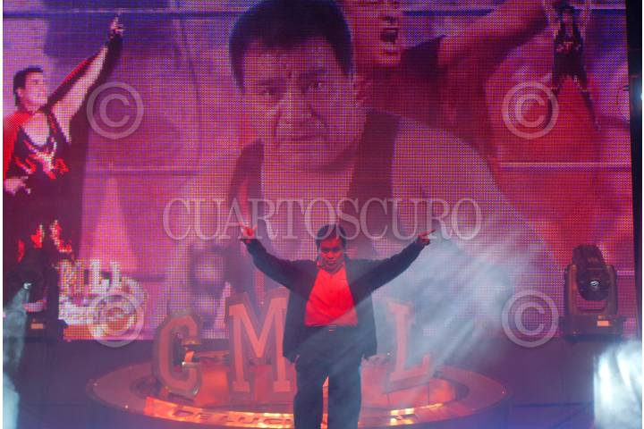 MÉXICO, D.,F 08JULIO2008.- La banda AK-7 y Cumbia Zero durante la rueda de prensa en la que se promocionó un encuentro entre luchadores de la CMLL, que se llevará acabo el próximo 12 de julio, esto para dar difusión a conocida linea de autobuses misma quien patrocina dicho espectáculo. FOTO: FELIPE CASTELLANOS/CUARTOSCURO.COM