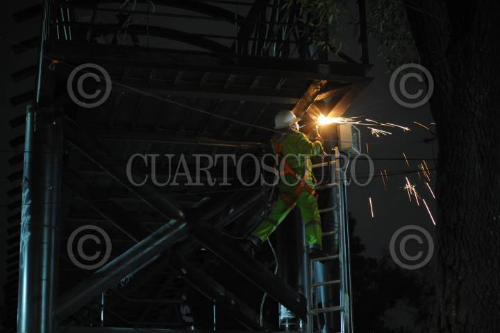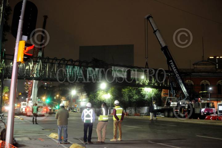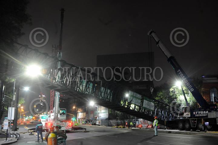 Personal de alcaldía Cuauhtémoc supervisaron las obras para retirar un puente peatonal en la colonia Roma Norte, en donde se hará un paso peatonal seguro.