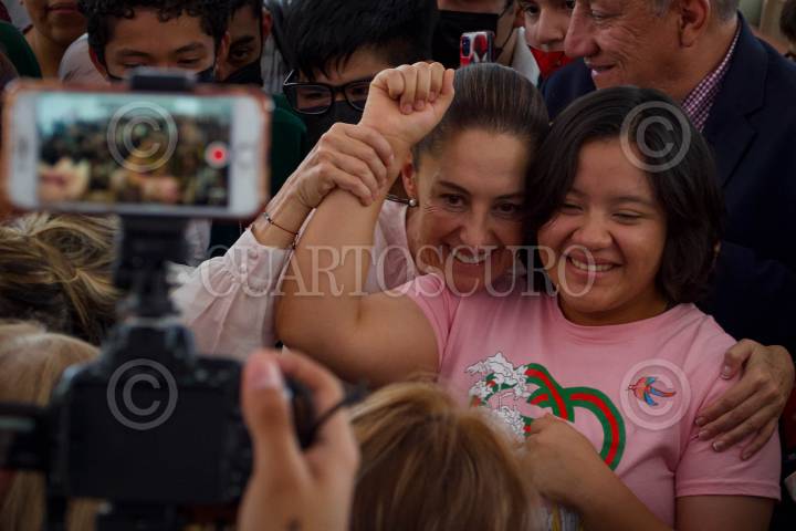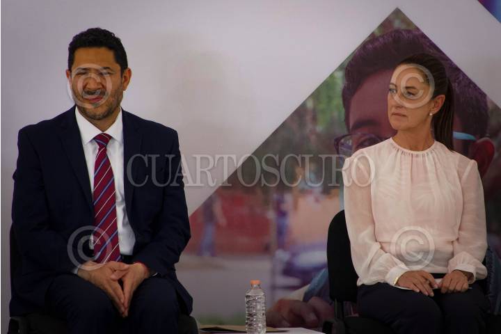 Claudia Sheinbaum y Martí Batres Guadarrama, durante el evento Mi Beca, Mi Derecho en Santa María la Rivera.