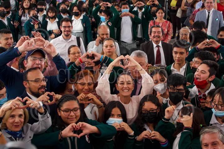 Claudia Sheinbaum, durante el evento Mi Beca, Mi Derecho en Santa María la Rivera.