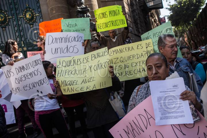 CIUDAD DE MÉXICO, 21NOVIEMBRE2017.- Damnificados del sismo del pasado 19 de septiembre, protestaron en las escaleras de la Asamblea Legislativa del Distrito Federal para exigir la recontrucción de sus hogares. FOTO: TERCERO DÍAZ /CUARTOSCURO.COM