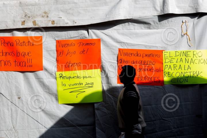 CIUDAD DE MÉXICO, 02DICIEMBRE2017.- Miembros del movimiento Comite en Defensa de los Barrios, se encuentran realizando un plantón en las calles Allende y Donceles frente a la Asamblea Legislativa del Distrito Federal, esto con el propósito de exigir ayuda en la reconstrucción de hogares para los damnificados del sismo del pasado 19 de spetiembre. FOTO: TERCERO DÍAZ /CUARTOSCURO.COM