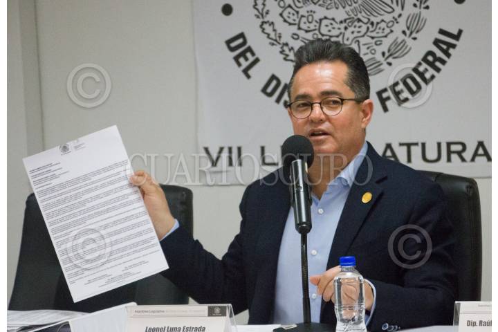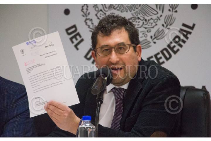 CIUDAD DE MÉXICO, 19FEBRERO2018.- Legisladores de Morena encabezados por César Cravioto, ofrecieron una conferencia de prensa para exigir a Leonel Luna, Mauricio Toledo y Jorge Romero transparentar los recursos de la Recostrucción de la Ciudad. FOTO: VICTORIA VALTIERRA /CUARTOSCURO.COM