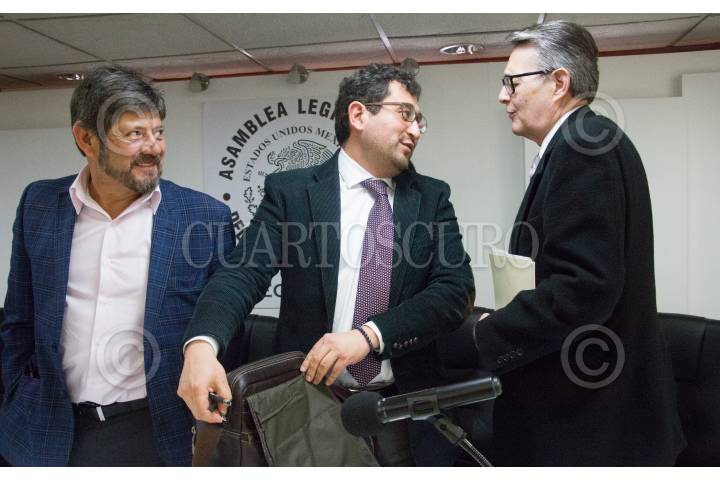 CIUDAD DE MÈXICO, 07DICIEMBRE2017.- Bernardo Fontana, Secretario del Consejo Directivo del CIRES, Humberto Rodríguez, miembro del consejo directivo, y Juan Manuel Espinosa Aranda, director general del CIRES, durante la entrega de la medalla al mérito ciudadano por parte de la Asamblea Legislativa del Distrito Federal (ALDF). FOTO: GALO CAÑAS /CUARTOSCURO.COM