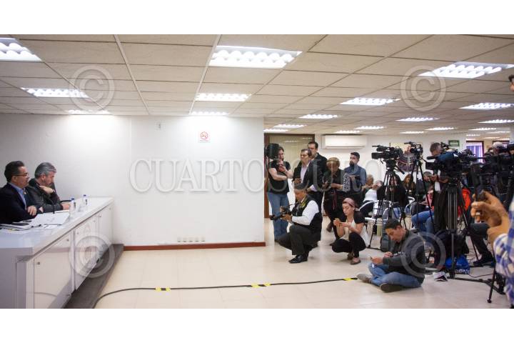 CIUDAD DE MÉXICO, 19FEBRERO2018.- Leonel Luna y Raúl Flores, del grupo parlamentario del PRD en conferencia de prensa hablaron sobre las acusaciones de malversacion de los recursos para la Reconstruccion de la Ciudad. FOTO: VICTORIA VALTIERRA /CUARTOSCURO.COM