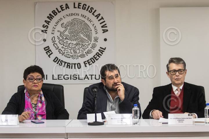 CIUDAD DE MÉXICO, 06AGOSTO2018.- Ernestina Godoy Ramos, diputada electa por Morena a la Asamblea Legislativa del Distrito Federal (ALDF), César Cravioto y Alfonso Suárez del Real, actuales asambleístas de la ALDF por Morena; ofrecieron conferencia de prensa en la cual dieron pormenores sobre la basificación de trabajadores de la ALDF. FOTO: MISAEL VALTIERRA /CUARTOSCURO.COM