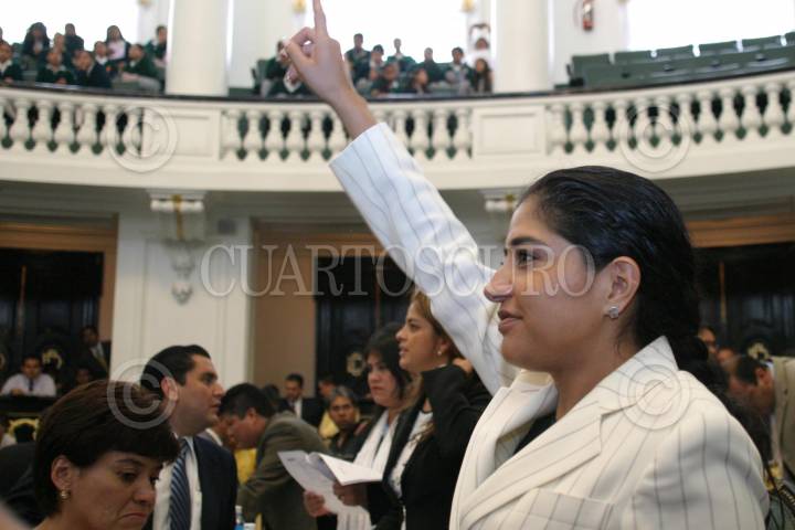 México, D.F 22 ABRIL 2004.- La diputada perredista Alejandra Barrales durante la sesión ordinaria en la ALDF. FOTO: Sandra Perdomo/CUARTOSCURO.COM