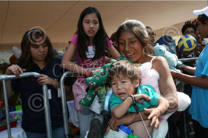 MÉXICO D.F. 24DICIEMBRE2007.-Por cuarto año consecutivo una famosa cafeteria y Fundación Alsea A.C. realizaron una colecta de juguetes para niños de escasos recursos los cuales fueron entregados esta mañana, acompañdos de comida y cobijas. FOTO: GUILLERMO PEREA/CUARTOSCURO.COM
