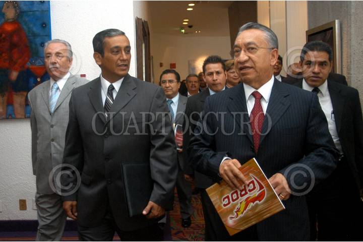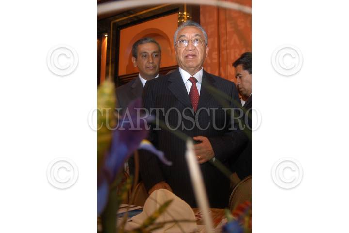 MÉXICO D.F. 22SEPTIEMBBRE2006.- El empresario Ernesto Chacón del grupo ALSEA, Isaias González Cuevas, presidente nacional de la CROC, durante la ceremonia del 97 de aniversario de esta organización en un lujoso hotel de la zona de Polanco. FOTO: GUILLERMO PEREA/CUARTOSCURO.COM