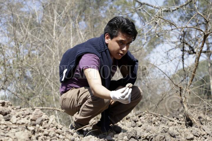 PUEBLA, PUEBLA, 01MARZO2018.- Se realizó el hallazgo de restos óseos prehispánicos en el cerro de Amalucan, por lo que integrante del colectivo Matlateilt Alseseca y vecinos de la zona exhortan al gobierno del estado a detener las obras del parque de Amalucan. FOTO: HILDA RÍOS / CUARTOSCURO.COM