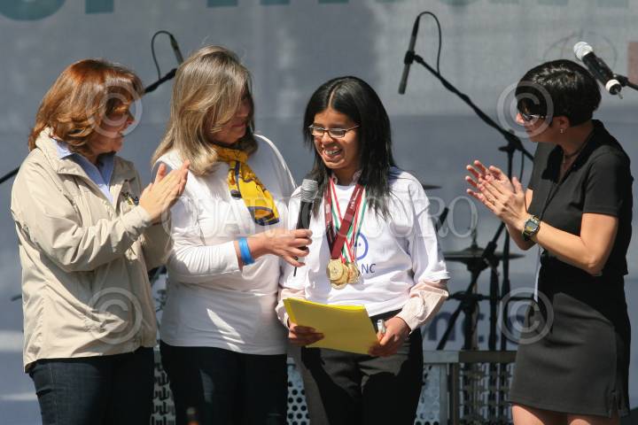 MÉXICO, D.F., 20FEBRERO2010.- Martha Delgado, secretaria de Medio Ambiente, y Guadalupe Alejandre, fundadora de la Asociación Mexicana de Ayuda a Niños con Cáncer, AMANC, encabezaron la conmemoración del Día Internacional del Cáncer Infantil, en la glorieta del Ángel de la Independencia. En la imagen, la niña Dania, quien se recuperó de cáncer, ofreció algunas palabras durante la ceremonia. FOTO: ISAAC ESQUIVEL/CUARTOSCURO.COM