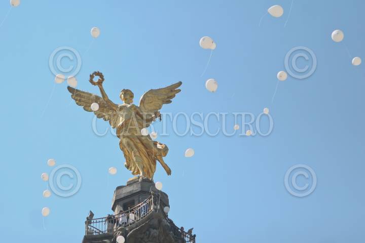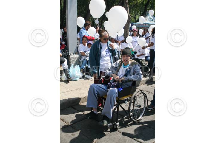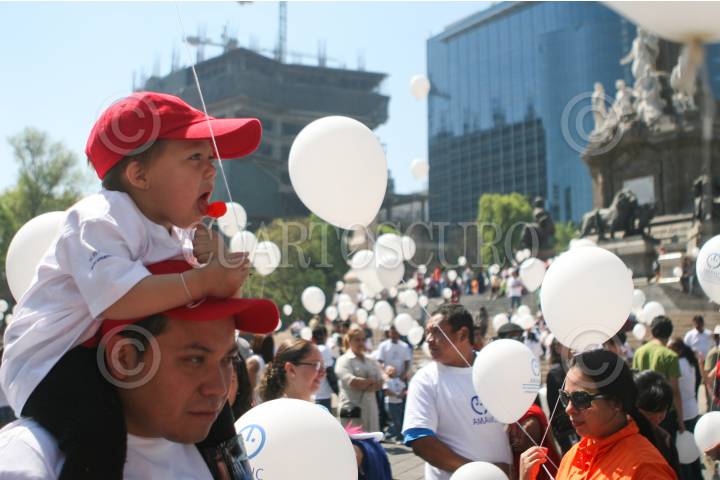 MÉXICO, D.F., 20FEBRERO2010.- Decenas de personas participacion en la conmemoración del Día Internacional del Cáncer Infantil, en la glorieta del Ángel de la Independencia. FOTO: ISAAC ESQUIVEL/CUARTOSCURO.COM