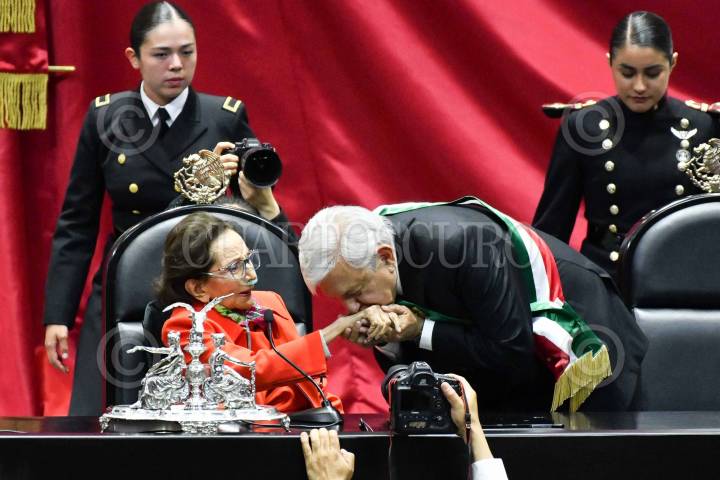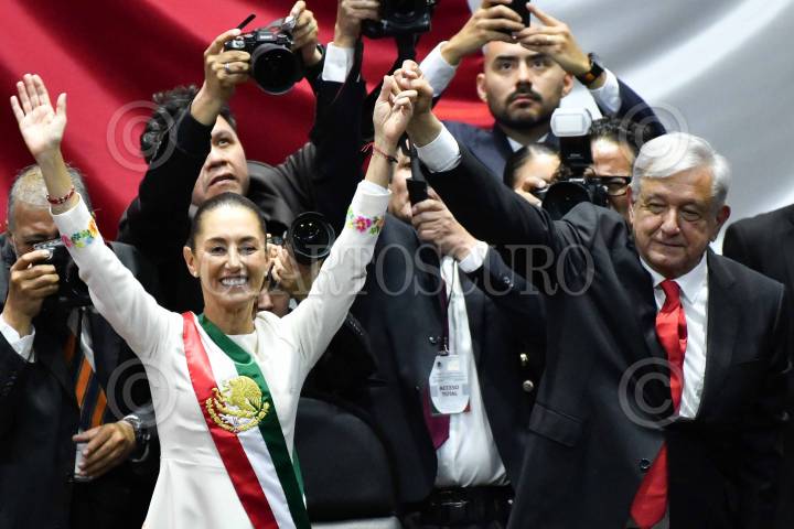 CIUDAD DE MÉXICO,01OCTUBRE2024.- Andrés Manuel López Obrador, expresidente de los Estados Unidos Mexicanos, entregó la banda presidencial a Claudia Sheinbaum, presidenta electa, durante la Sesión Ordinaria en la Cámara de Diputados. FOTO: GRACIELA LÓPEZ/CUARTOSCURO.COM