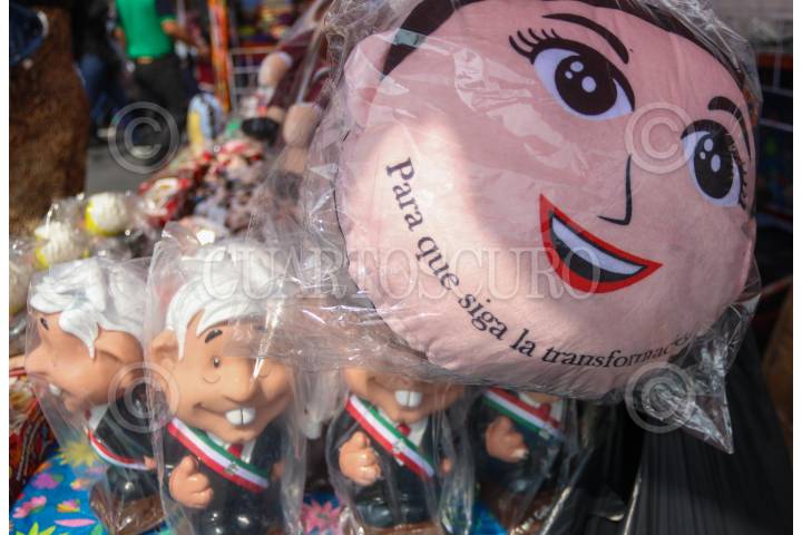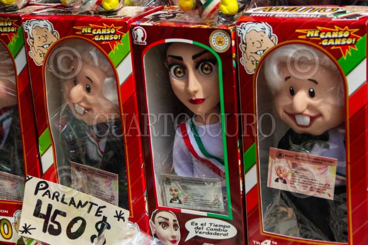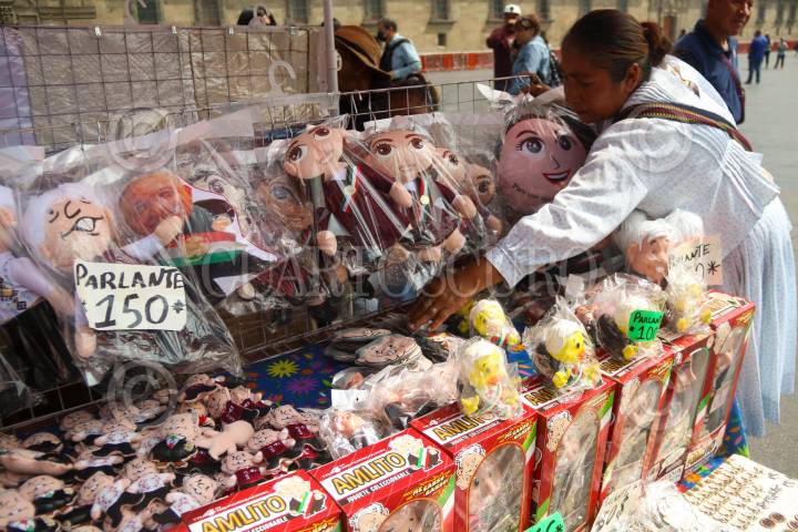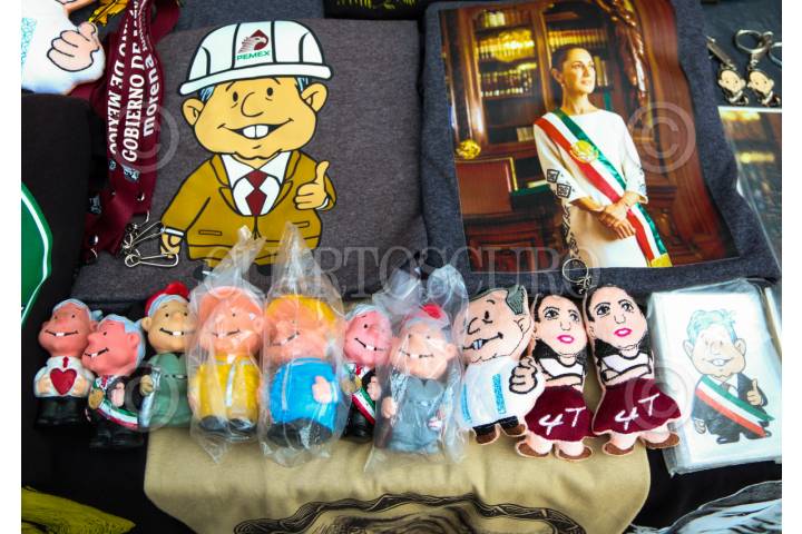 CIUDAD DE MÉXICO. 25OCTIBRE2024.- Figuras Presidenciales, de venta en las cercanías de Palacio Nacional, por parte del comercio ambulante. Para llevarse un recuerdo que está al alcance de todos los bolsillos. FOTO: VICTORIA VALTIERRA/CUARTOSCURO.COM